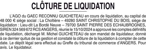GAEC GUICHETEAU - Clôture de liquidation