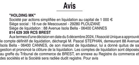 La présentation de votre annonce peut varier selon la composition graphique du journal