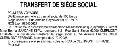 La présentation de votre annonce peut varier selon la composition graphique du journal