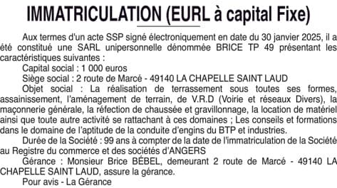 La présentation de votre annonce peut varier selon la composition graphique du journal