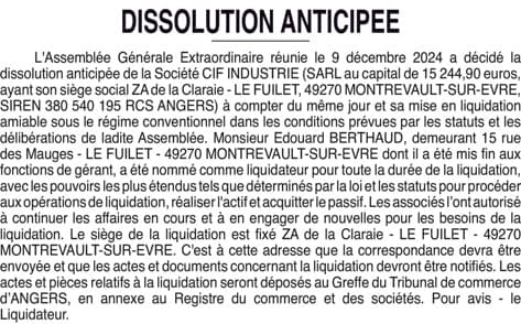 La présentation de votre annonce peut varier selon la composition graphique du journal