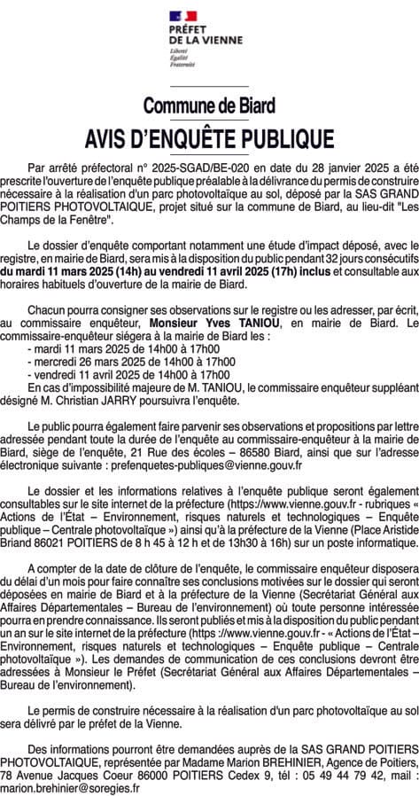 SAS GRAND POITIERS PHOTOVOLTAIQUE - Vienne (86)