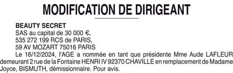 La présentation de votre annonce peut varier selon la composition graphique du journal