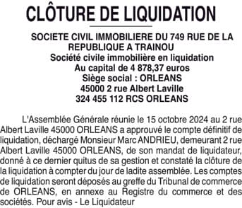 SCI 749 RUE DE LA REPUBLIQUE - LIQUIDATION