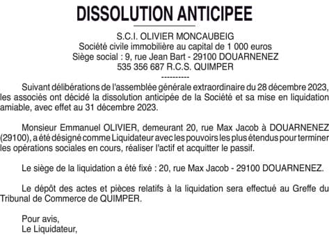 270761 - S.C.I.OLIVIER MONCAUBEIG - Dissolution anticipée