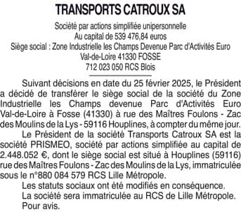 2588102 TRANSPORTS CATROUX SA