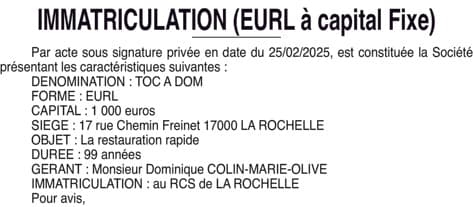 La présentation de votre annonce peut varier selon la composition graphique du journal