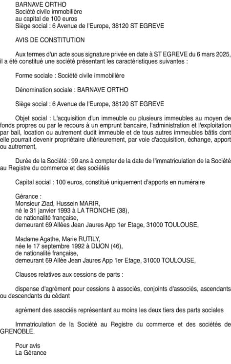 La présentation de votre annonce peut varier selon la composition graphique du journal