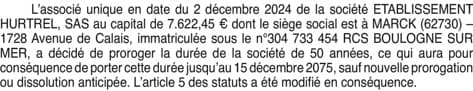 GP/AS - ETABLISSEMENTS HURTREL - Prorogation durée
