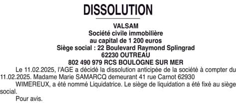 SCI VALSAM - Pas-de-calais (62)