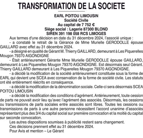 EARL POITOU LIMOUSIN - Haute-vienne (87)