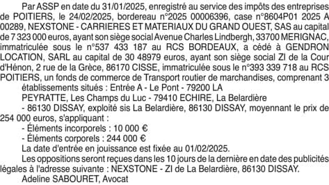 La présentation de votre annonce peut varier selon la composition graphique du journal