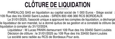 CLOTURE LIQUIDATION