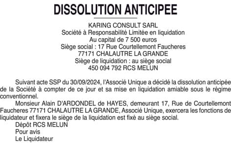 La présentation de votre annonce peut varier selon la composition graphique du journal