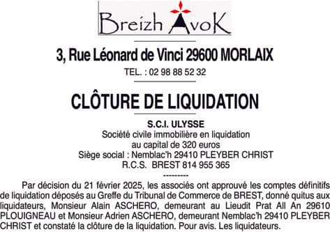 SCI ULYSSE - Clôture de liquidation