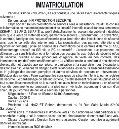 SASU HR PROTECTION SECURITE - Moselle (57)