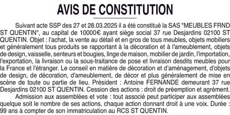 La présentation de votre annonce peut varier selon la composition graphique du journal