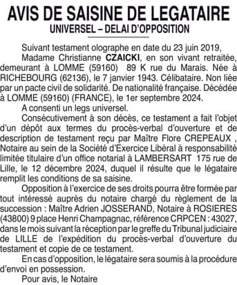 La présentation de votre annonce peut varier selon la composition graphique du journal