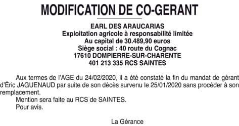 Décès co-gérant - dévolution successorale de parts - MAJ Statuts