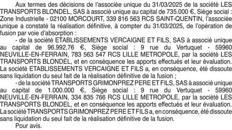 LES TRANSPORTS BLONDEL - Aisne (02)