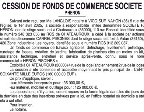 La présentation de votre annonce peut varier selon la composition graphique du journal