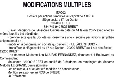 La présentation de votre annonce peut varier selon la composition graphique du journal