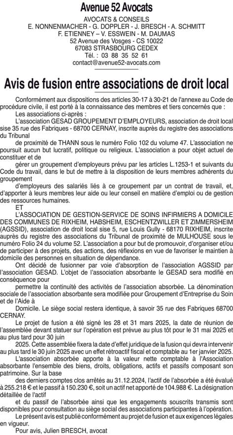 L’ASSOCIATION DE GESTION-SERVICE DE SOINS INFIRMIERS A DOMICILE DES COMMUNES DE RIXHEIM, HABSHEIM, ESCHENTZWILLER ET ZIMMERSHEIM - Haut-rhin (68)