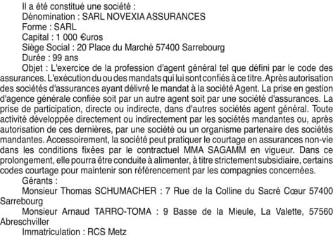 SARL NOVEXIA ASSURANCES - Moselle (57)