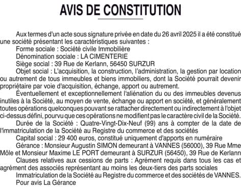 La présentation de votre annonce peut varier selon la composition graphique du journal