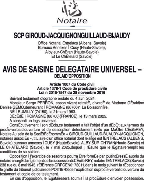 La présentation de votre annonce peut varier selon la composition graphique du journal