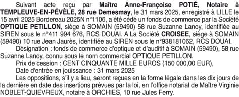 La présentation de votre annonce peut varier selon la composition graphique du journal