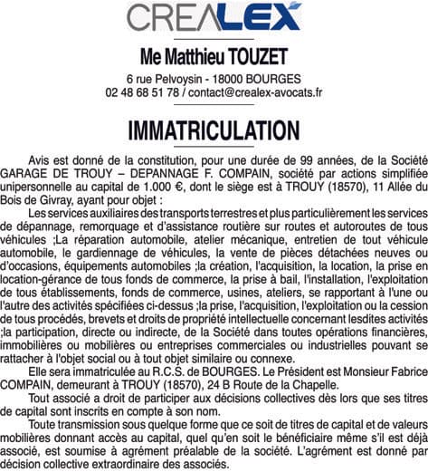 La présentation de votre annonce peut varier selon la composition graphique du journal