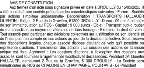 TRANSPORTS HALLAUER QUENTIN - Marne (51)